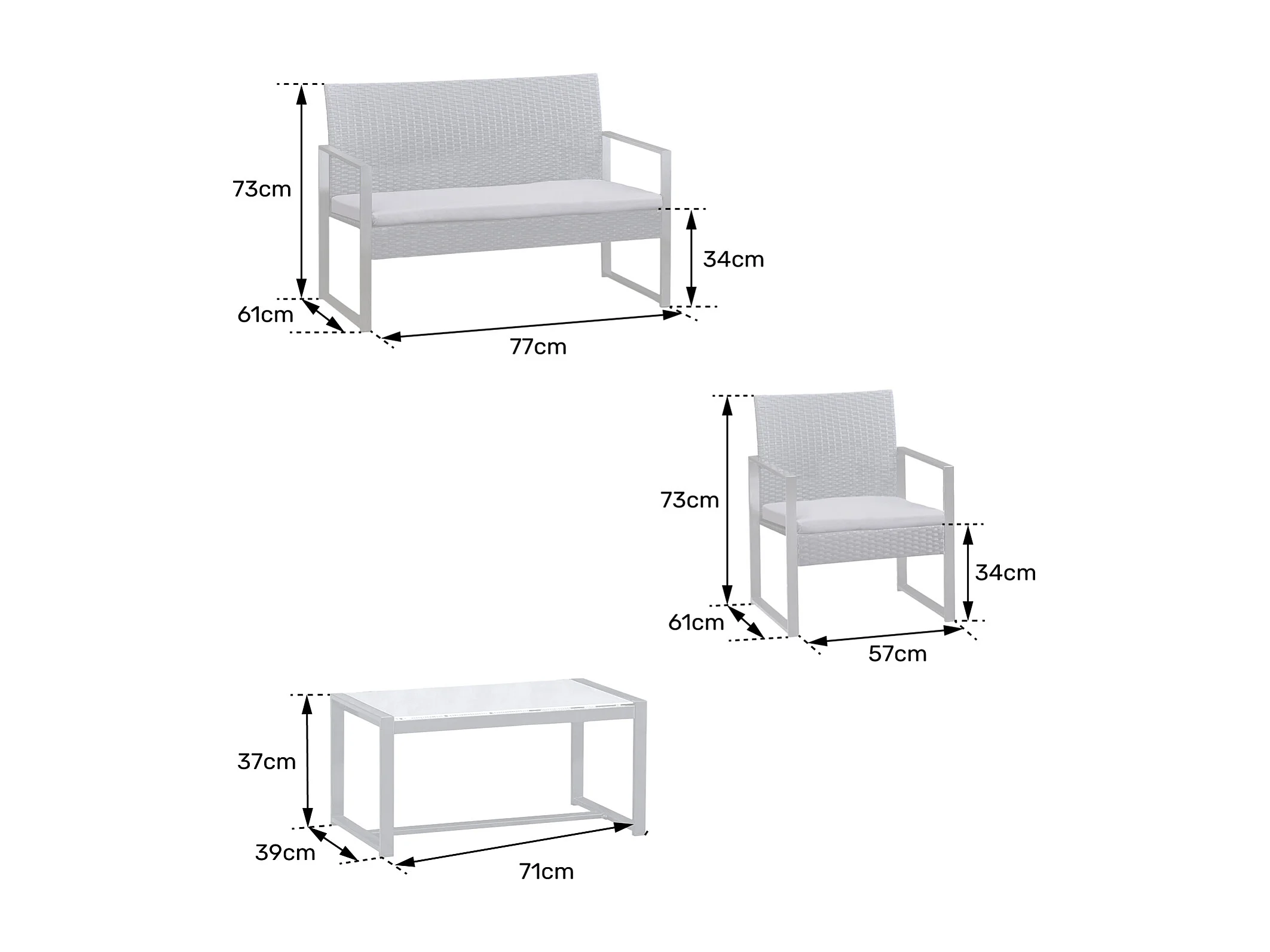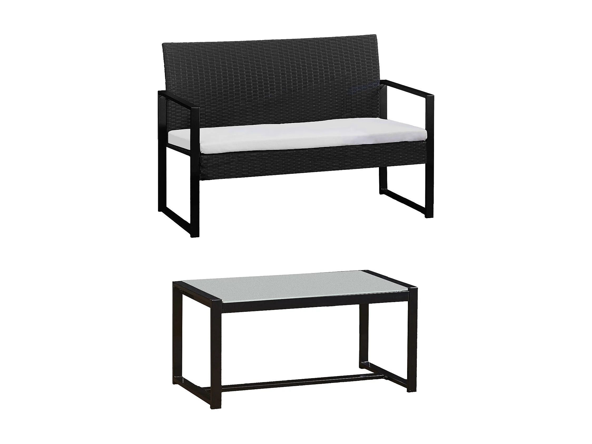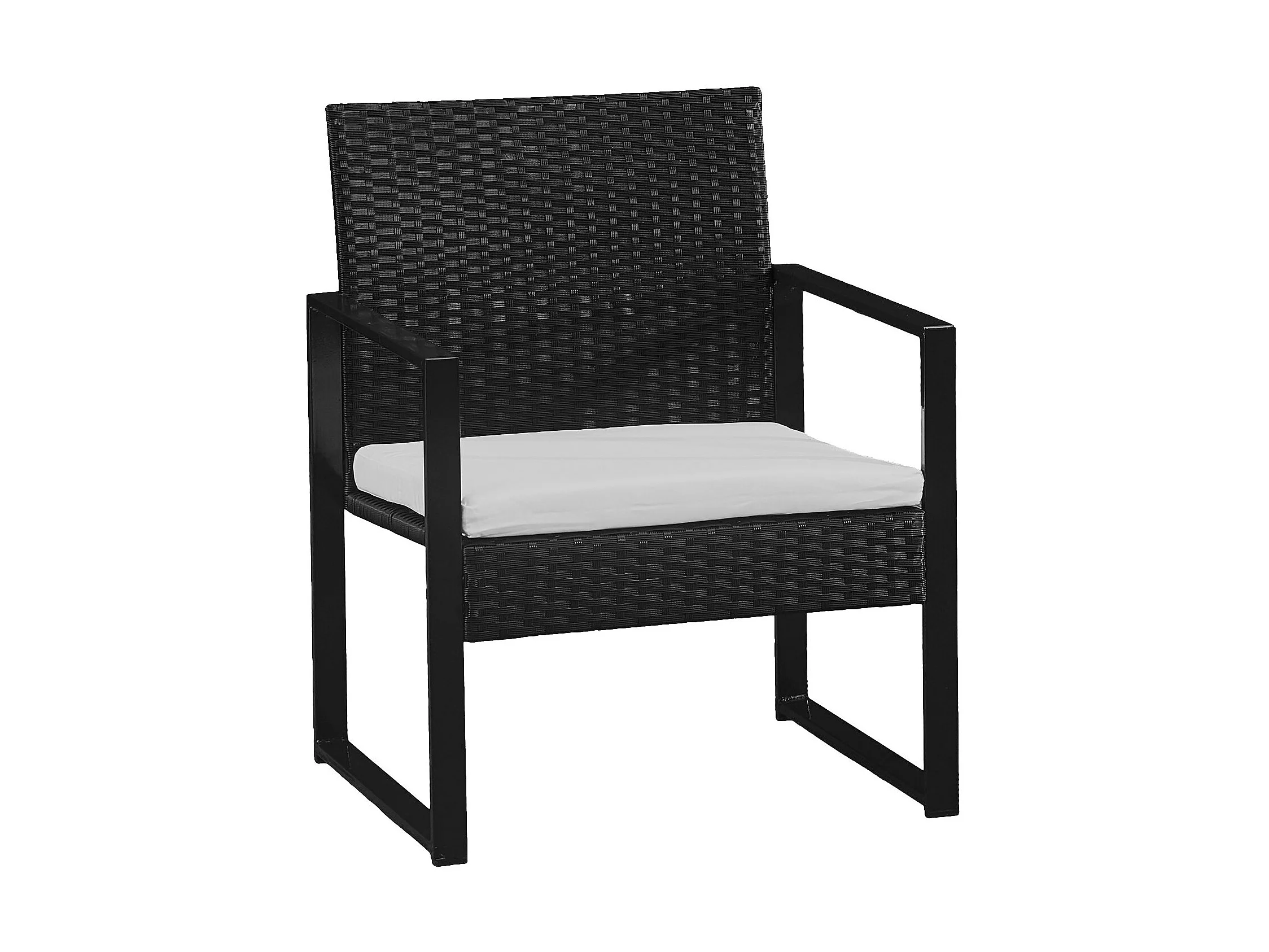 Set di mobili da giardino MAJORQUE in resina intrecciata nera - 4 posti - cuscini crema
