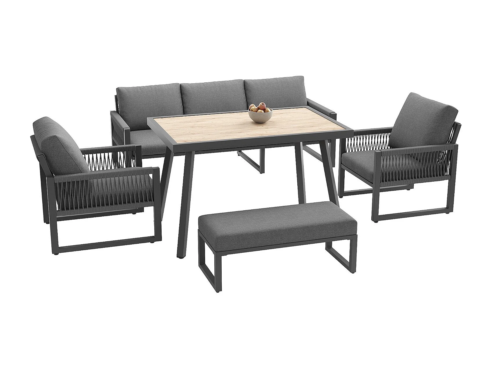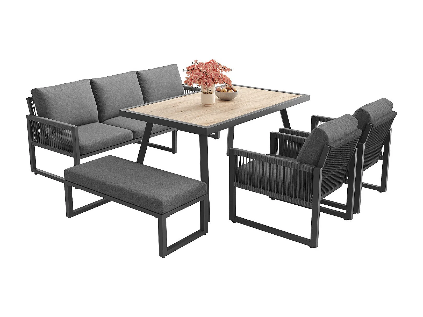 Set di mobili da giardino, può ospitare da 6 a 7 persone, cuscini e schienali di alta qualità, resistente alle intemperie, grigio
