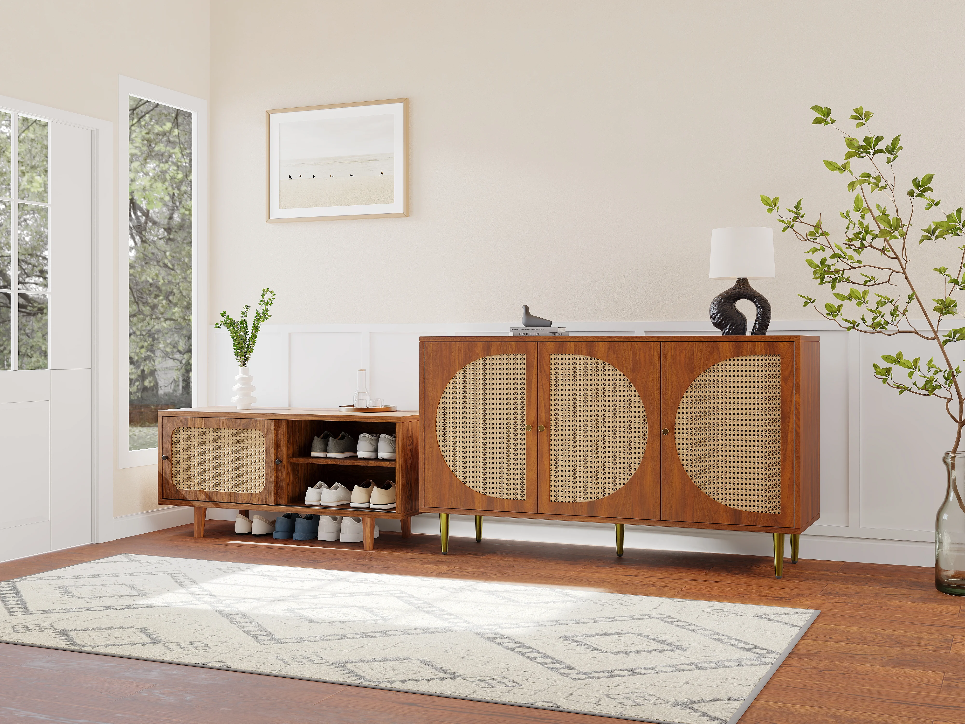 Set di mobili da ingresso in rattan, cassettiera e scarpiera combinati, MDF, noce (147,5x50,2x12 cm)