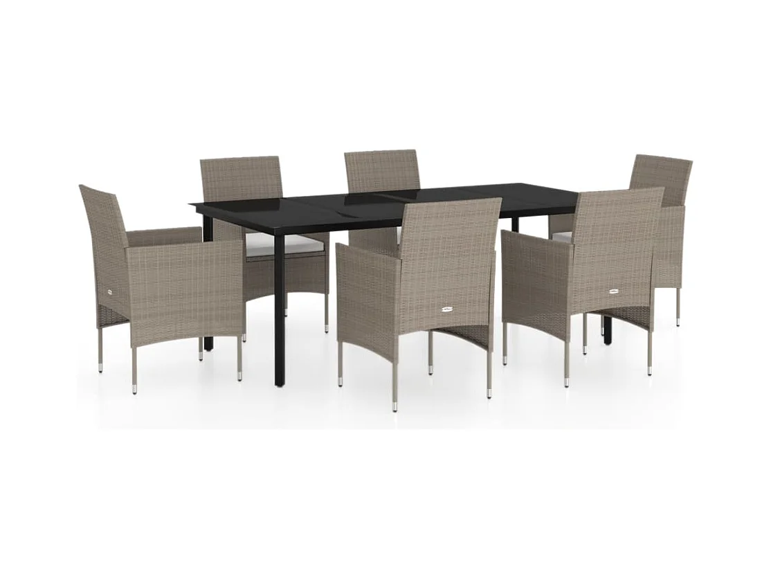 Set di mobili da pranzo da giardino con cuscini 7 pezzi beige/nero 02_0014621