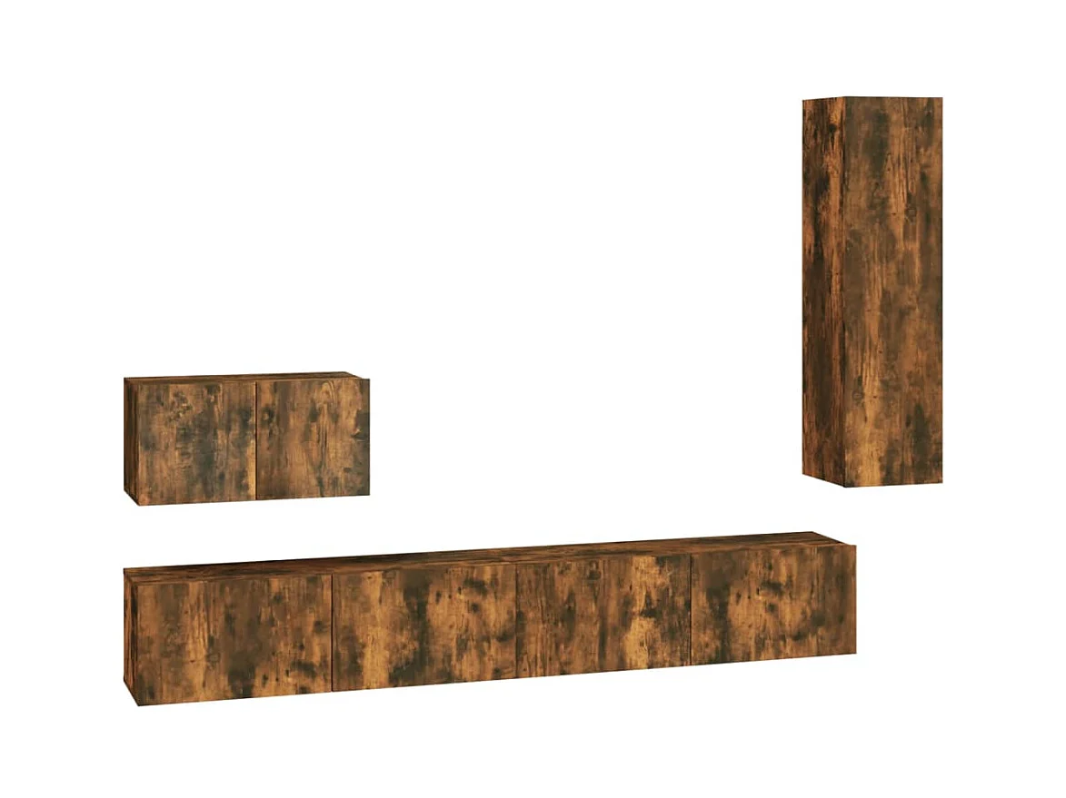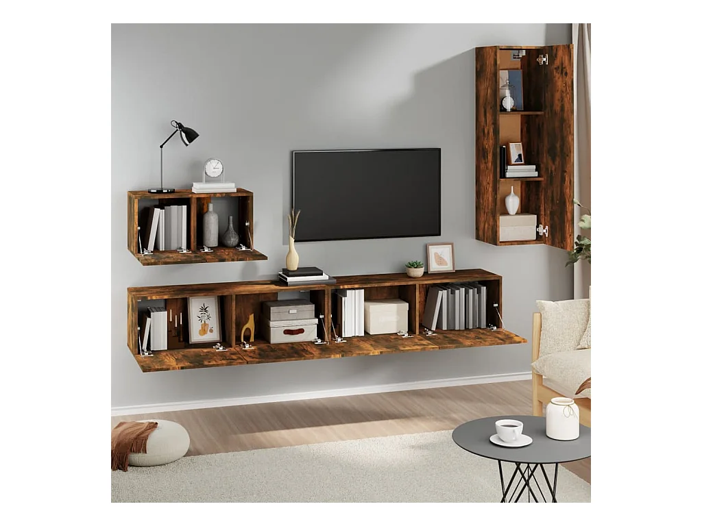 Set di mobili porta TV da 4 pezzi in rovere affumicato, legno ingegnerizzato