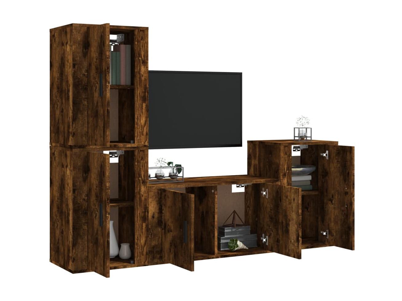 Set di mobili porta TV da 4 pezzi in rovere affumicato, legno ingegnerizzato