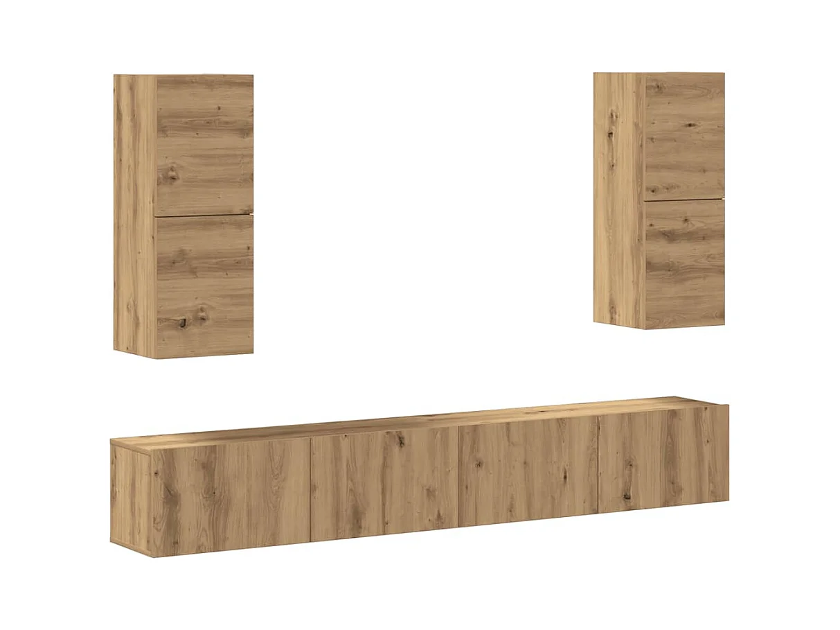 Set di mobili porta TV da parete da 6 pezzi, in rovere lavorato a mano