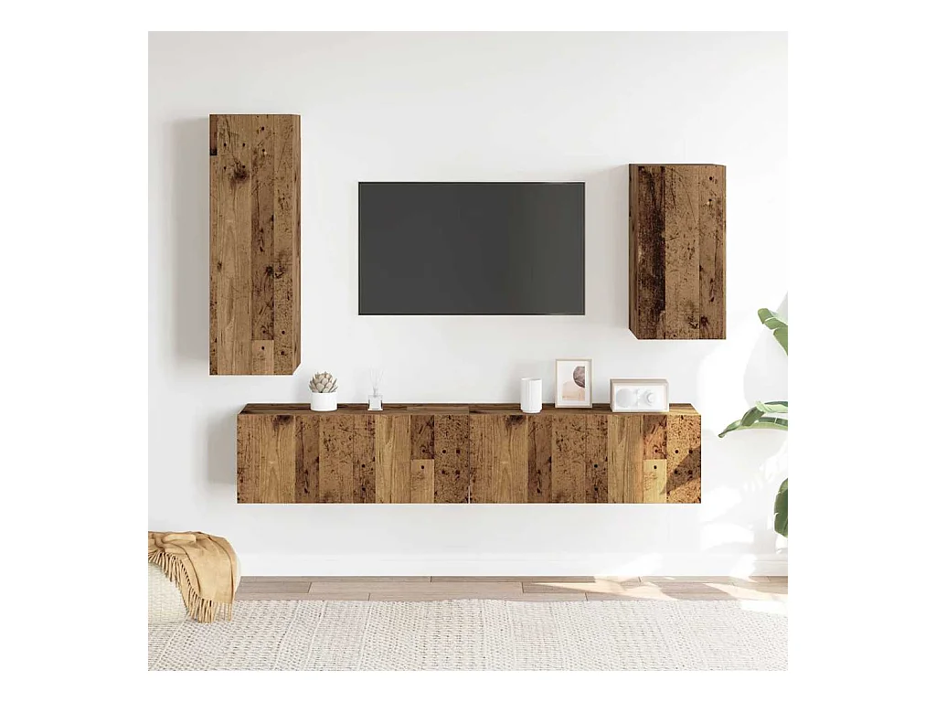 Set di mobili porta TV da parete da 4 pezzi, legno invecchiato, legno ingegnerizzato