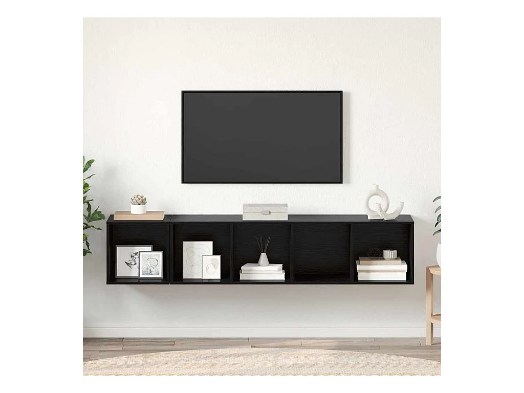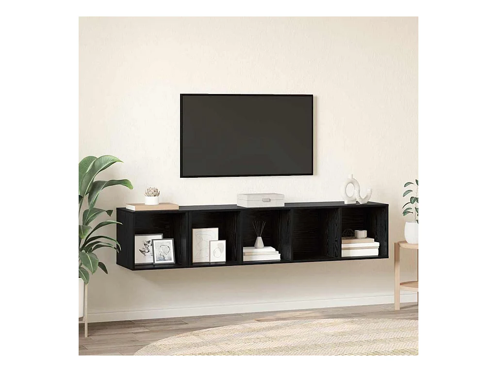 Mobile TV da parete 2 pezzi in rovere nero 37 x 37 x 72 cm