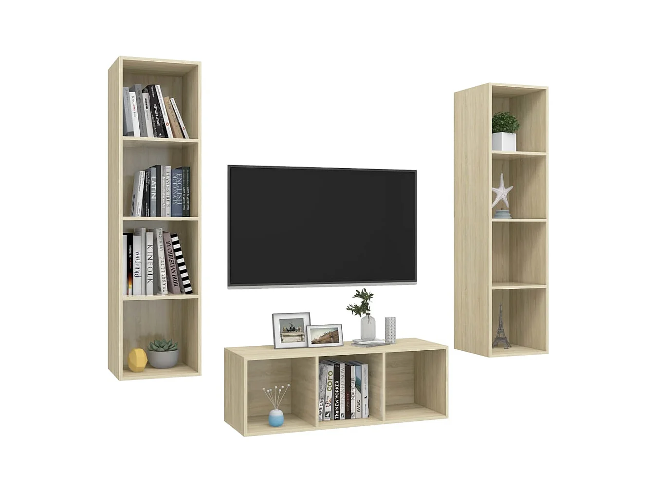 Set di mobili TV da 3 pezzi in legno ingegnerizzato Sonoma Oak