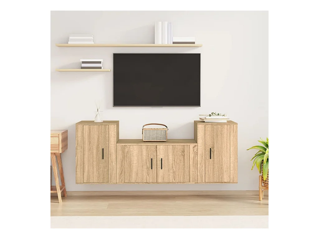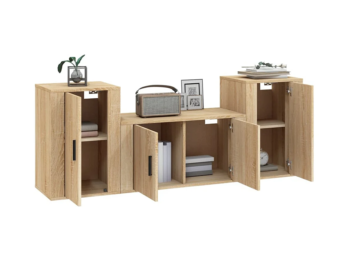 Set di mobili TV da 3 pezzi in legno ingegnerizzato Sonoma Oak