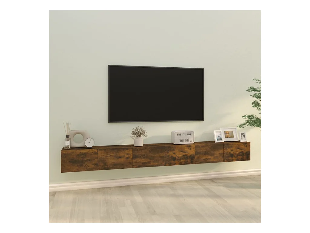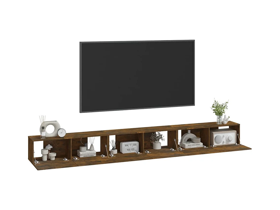Set di mobili porta TV da parete da 6 pezzi, in rovere lavorato a mano