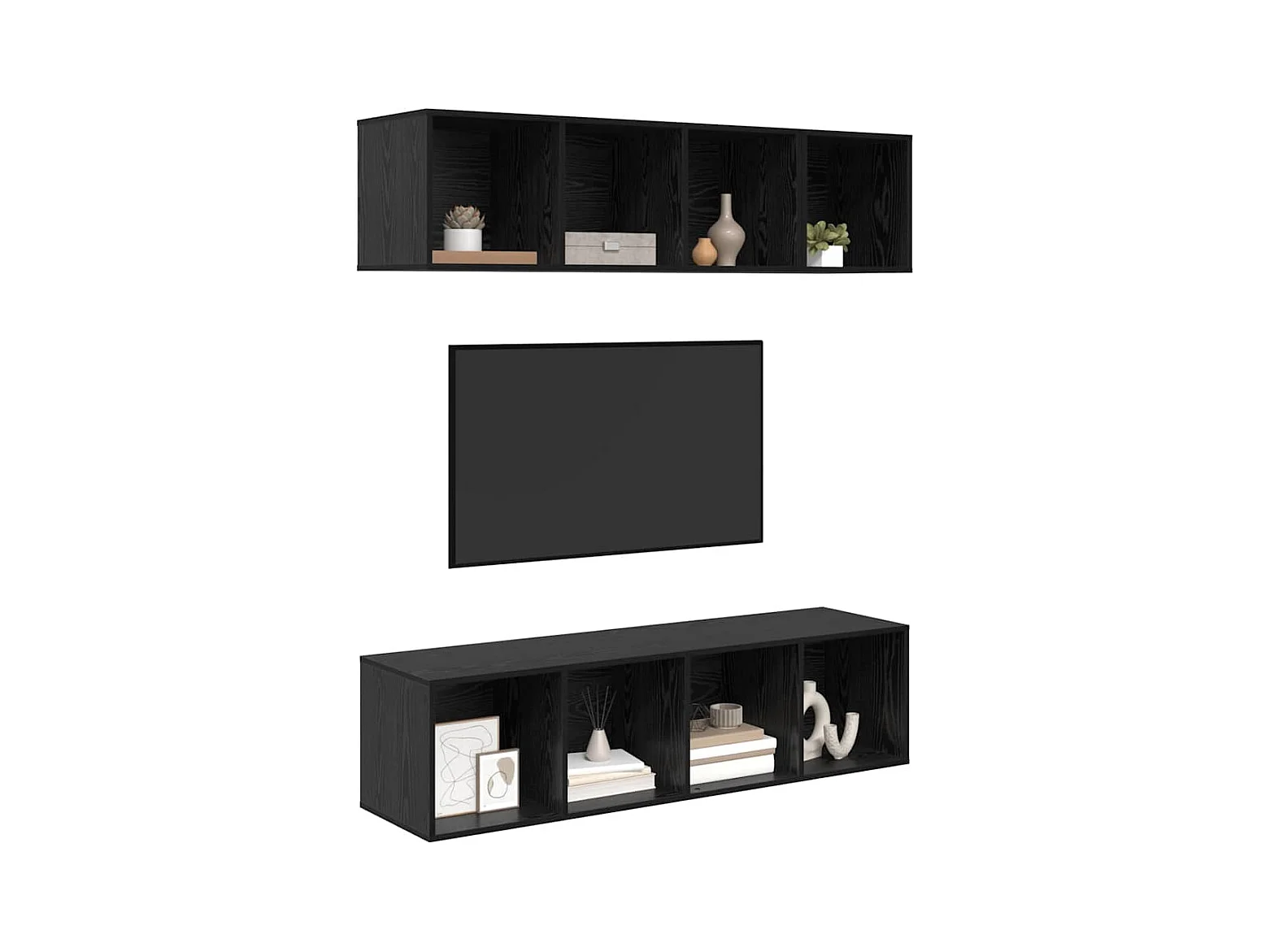 Set di mobili TV da 3 pezzi in rovere nero, legno ingegnerizzato