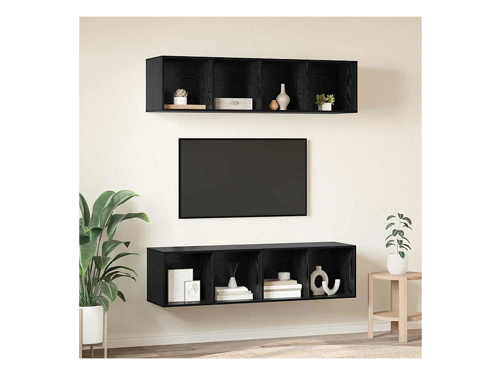 Mobile TV da parete 2 pezzi in rovere nero 37 x 37 x 72 cm