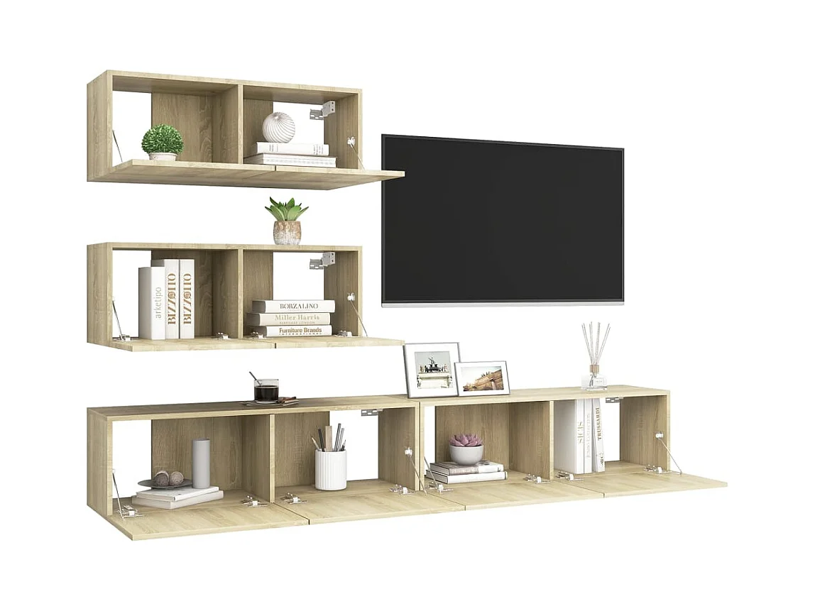 Set di mobili TV da 4 pezzi in legno ingegnerizzato Sonoma Oak