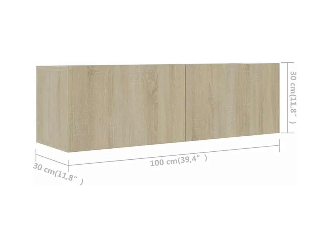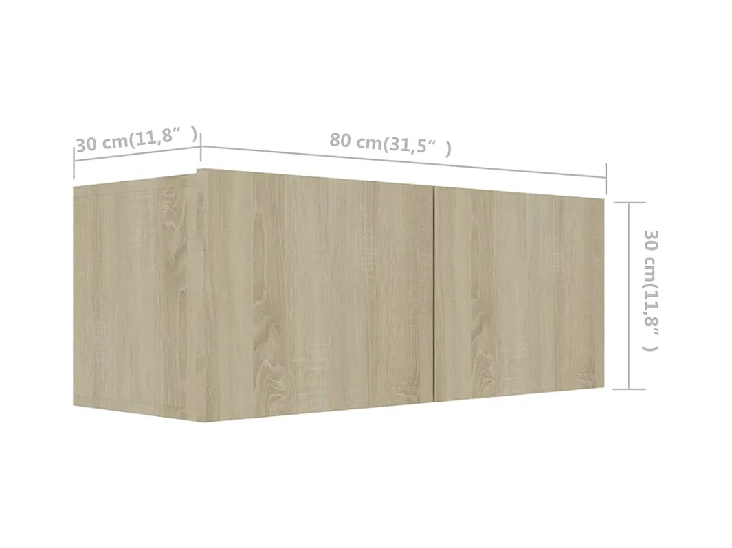 Mobile TV da parete 2 pezzi in rovere artigianale 80 x 30 x 30 cm