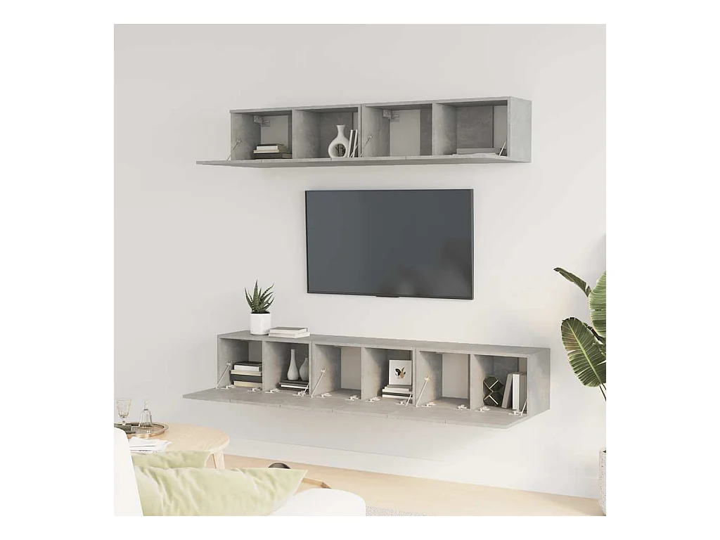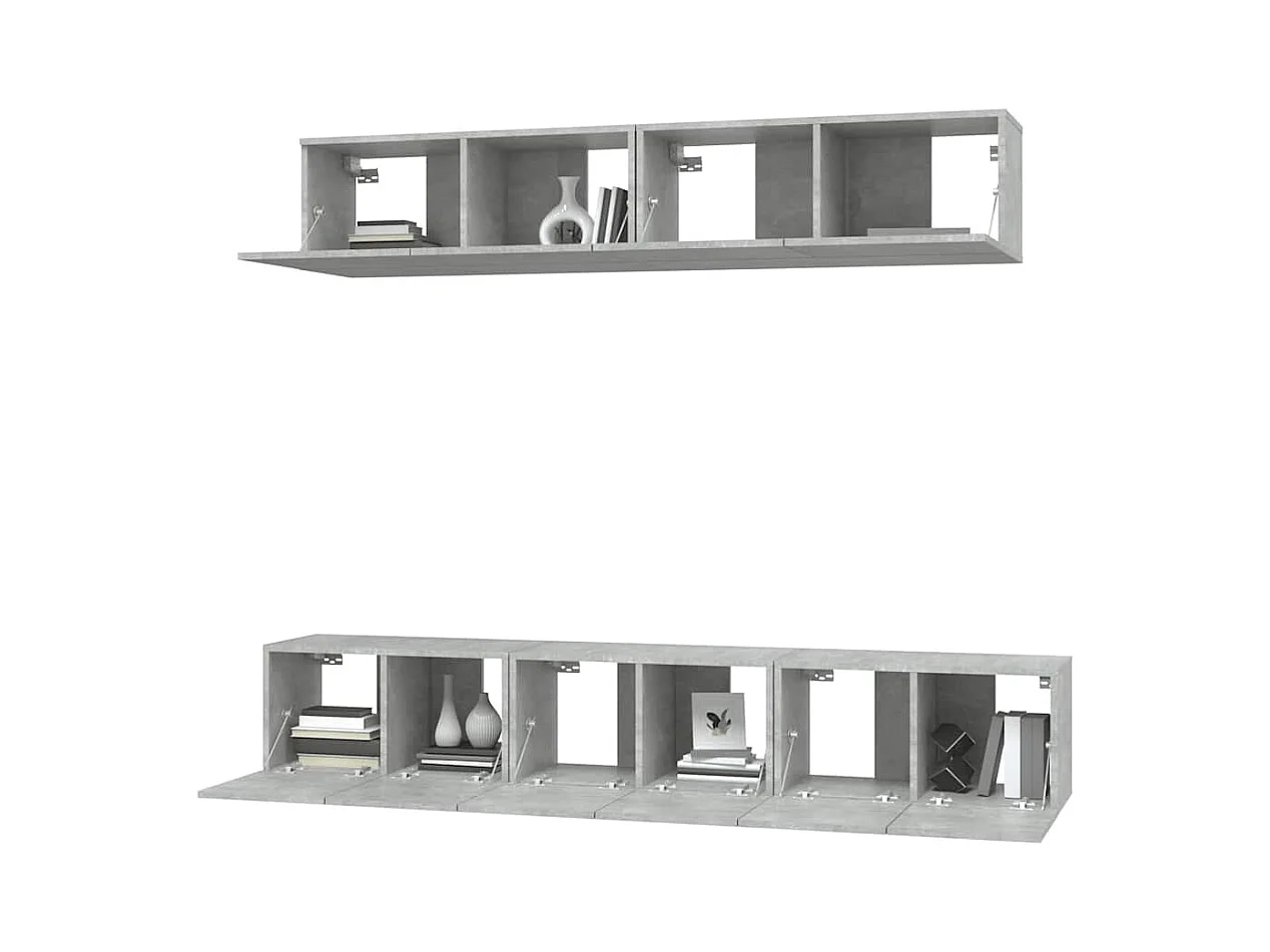Set di mobili TV da 4 pezzi in legno ingegnerizzato grigio cemento