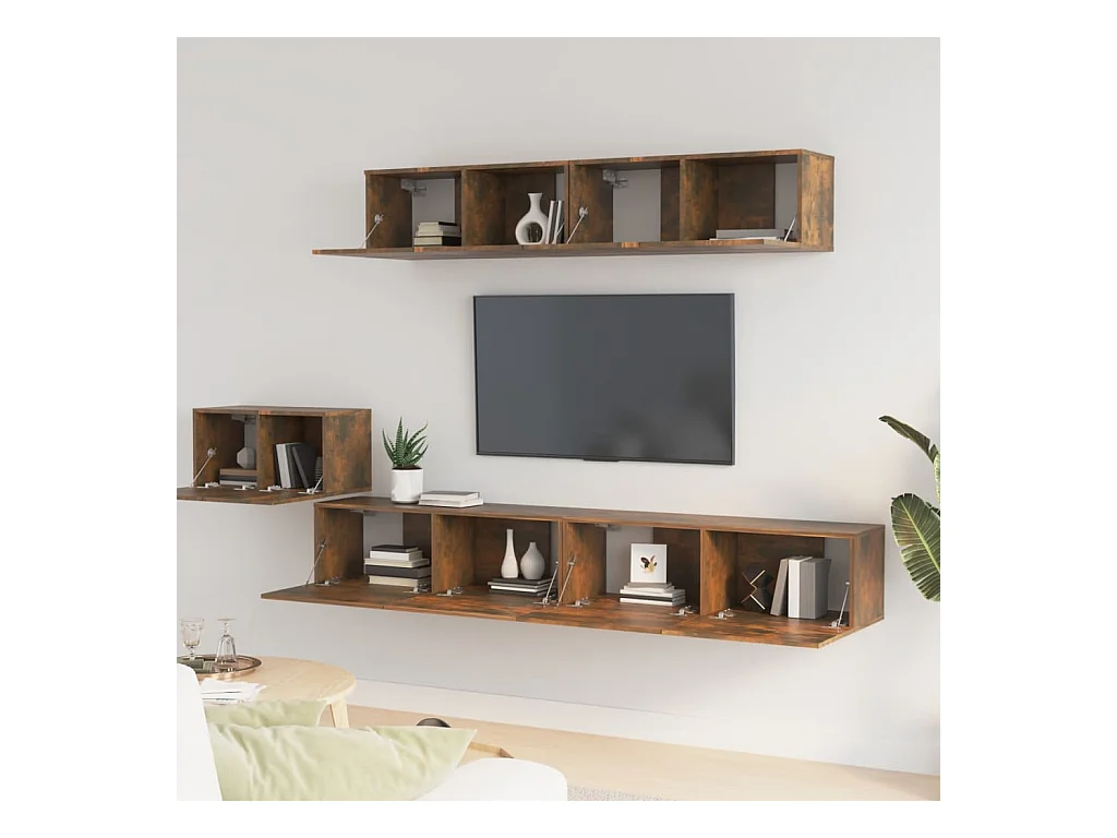 Set di mobili TV da 5 pezzi in rovere affumicato, legno ingegnerizzato