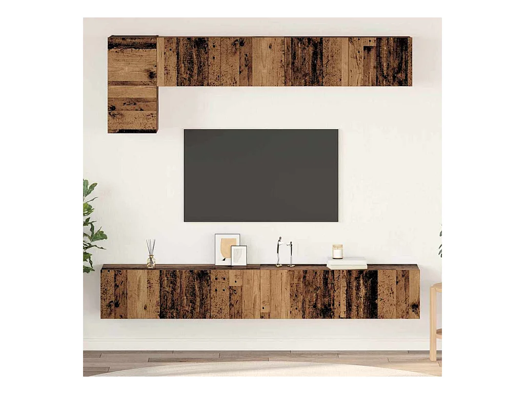 Set di mobili porta TV da parete da 7 pezzi, legno invecchiato, legno ingegnerizzato