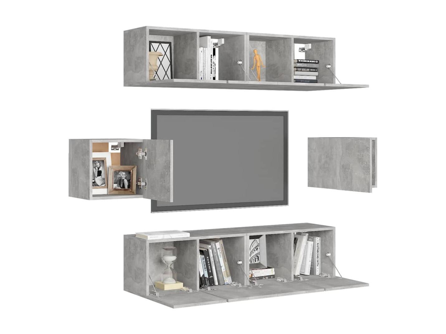 Set di mobili TV da 6 pezzi in legno ingegnerizzato grigio cemento