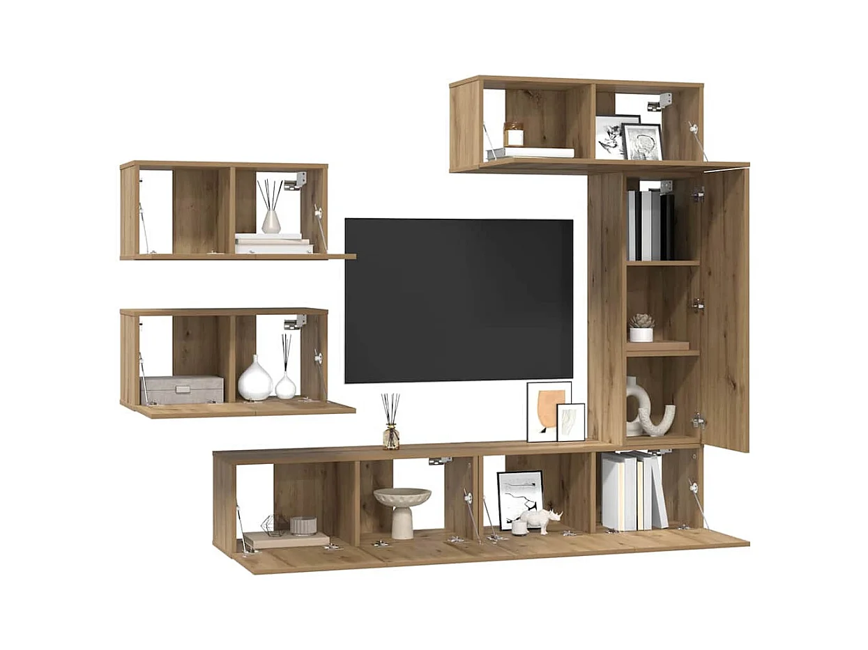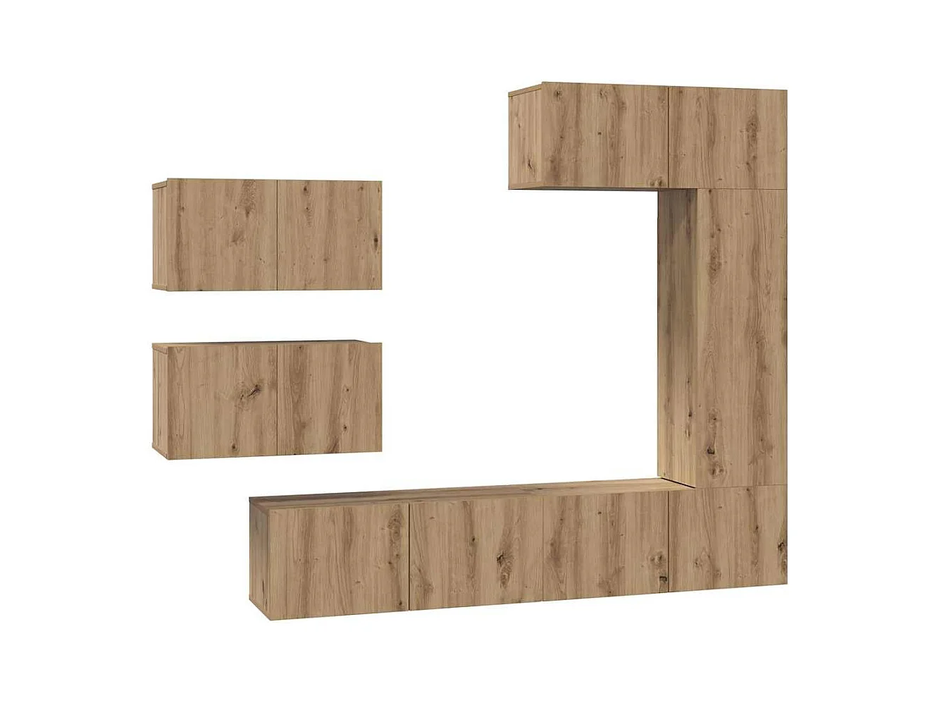 Set di mobili porta TV da parete da 8 pezzi, in rovere lavorato a mano