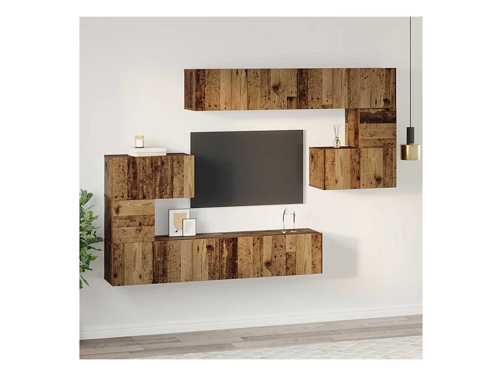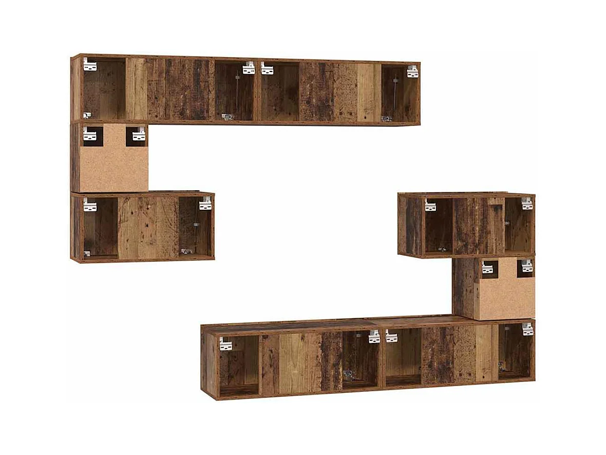 Set di mobili porta TV da parete da 8 pezzi, legno invecchiato, legno ingegnerizzato