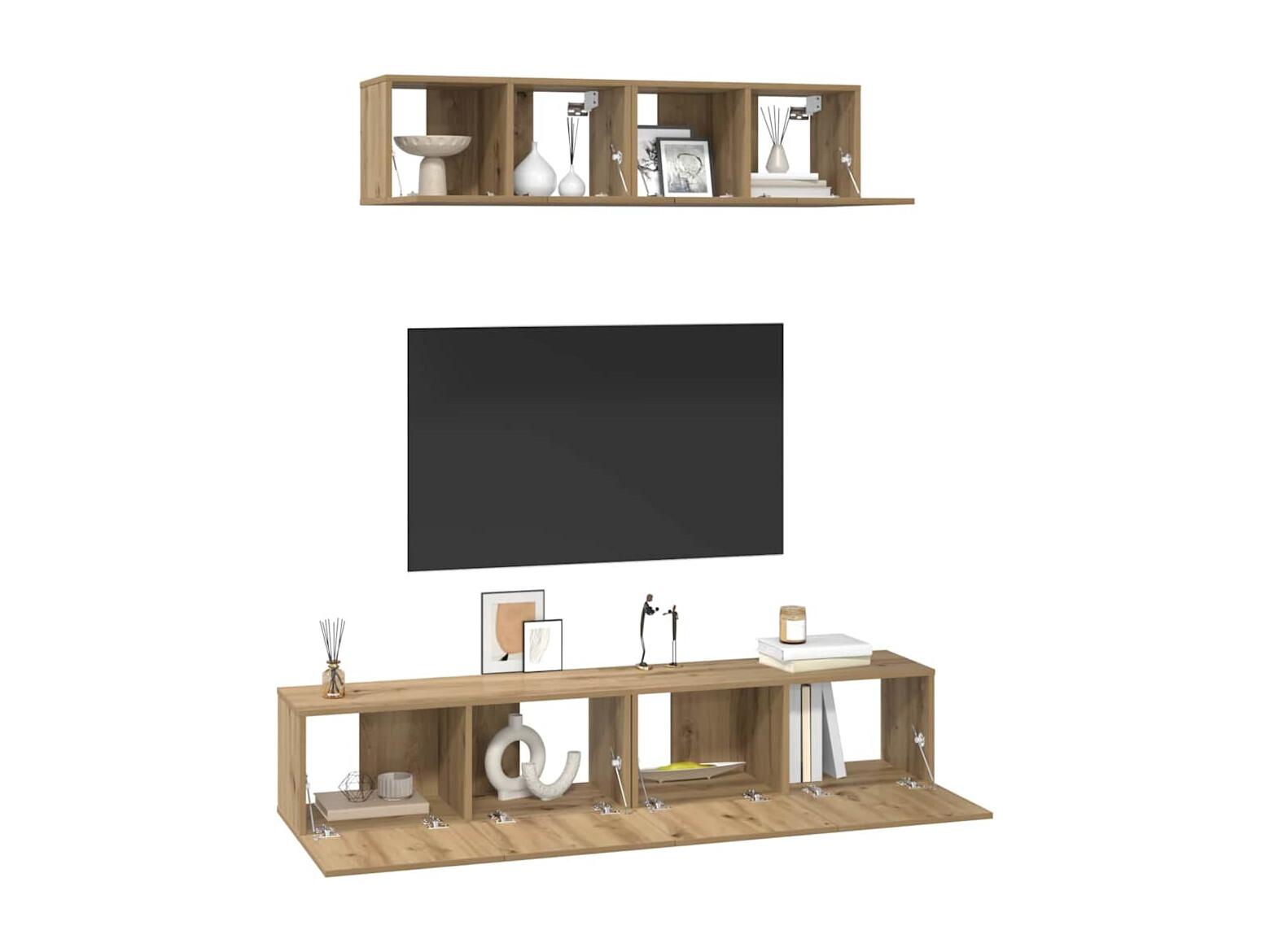 Set di mobili TV da parete 4 pezzi in rovere lavorato a mano