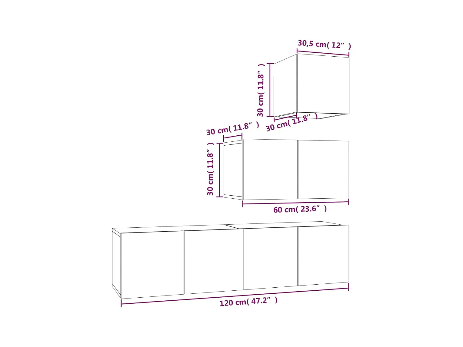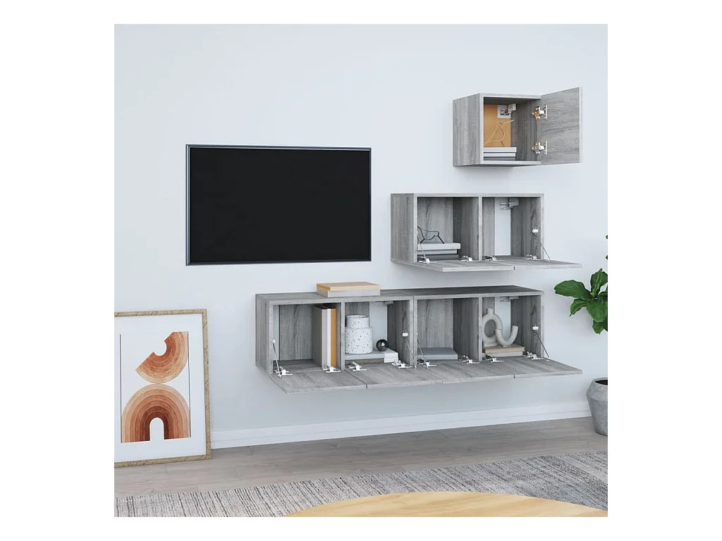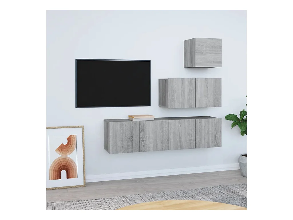 Set di mobili TV Sonoma Gray da 4 pezzi in legno ingegnerizzato