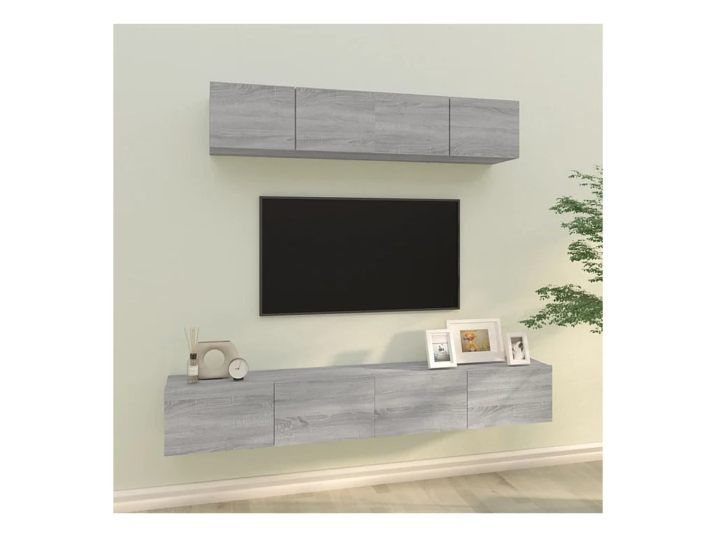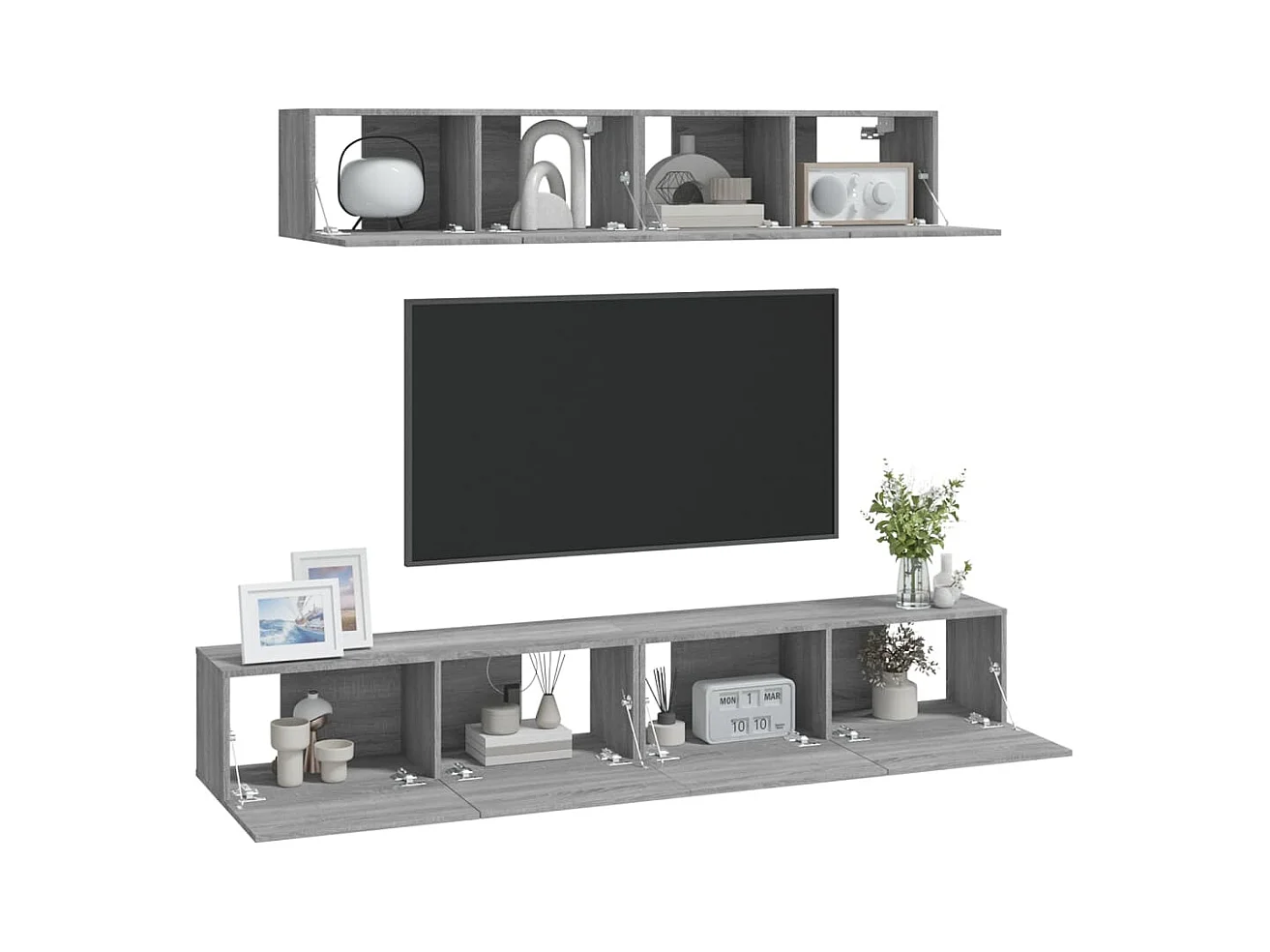 Set di mobili TV Sonoma Gray da 4 pezzi in legno ingegnerizzato
