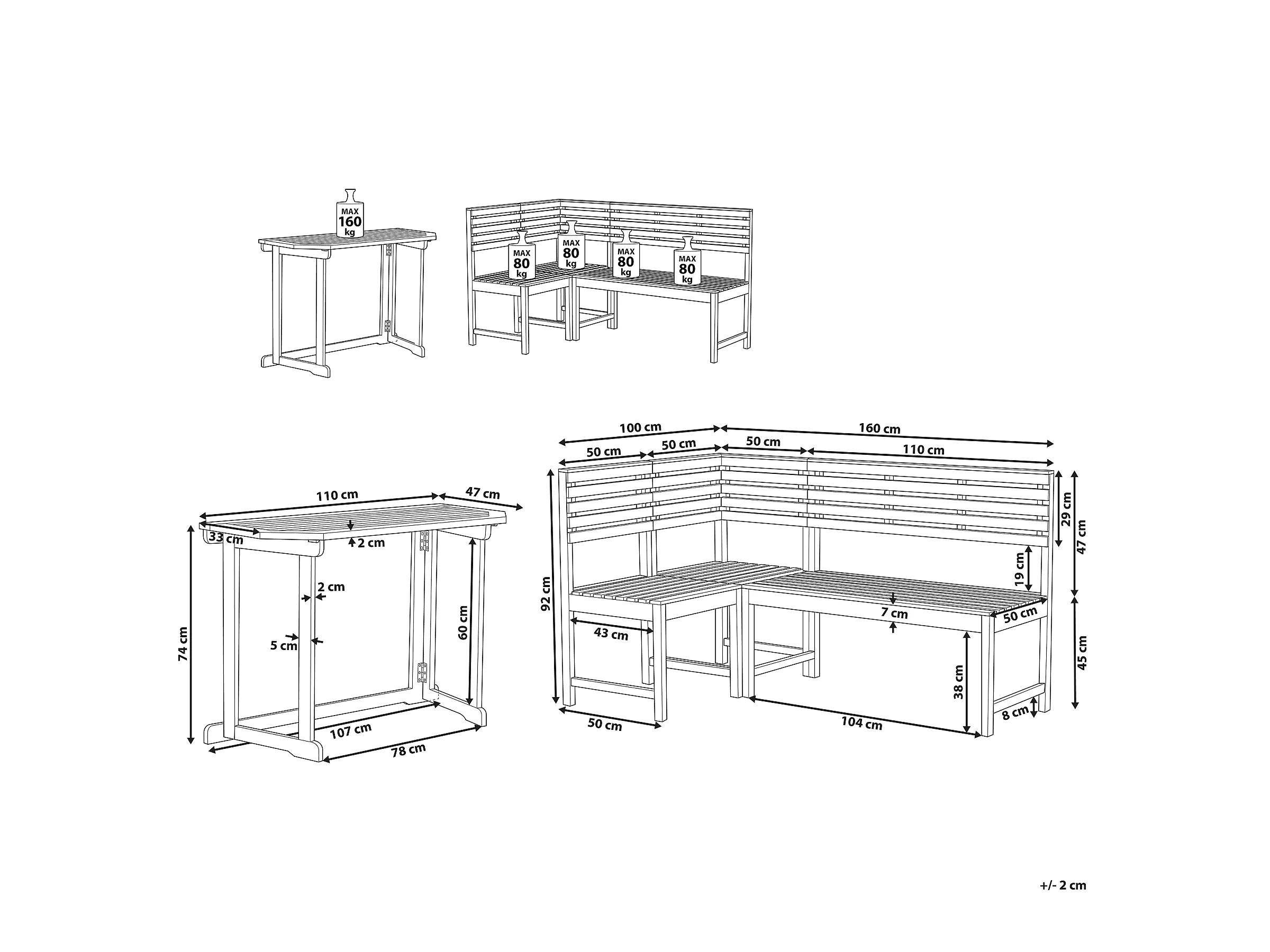Set da pranzo per balcone 4 posti TREIA Legno d'acacia Marrone