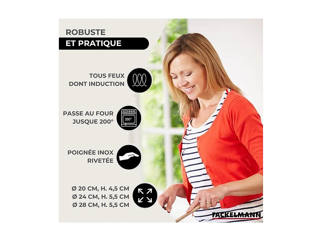 Set di pentole Fackelmann Eterna 3 padelle in acciaio inox 18/8 con coperchi in vetro e 6 utensili in acciaio inox, compatibili con tutti i fuochi inclusa induzione