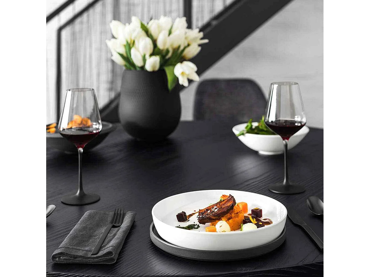 Set di piatti per 2 persone, 7 pezzi, in porcellana bianco/nero D24 cm, La Boule