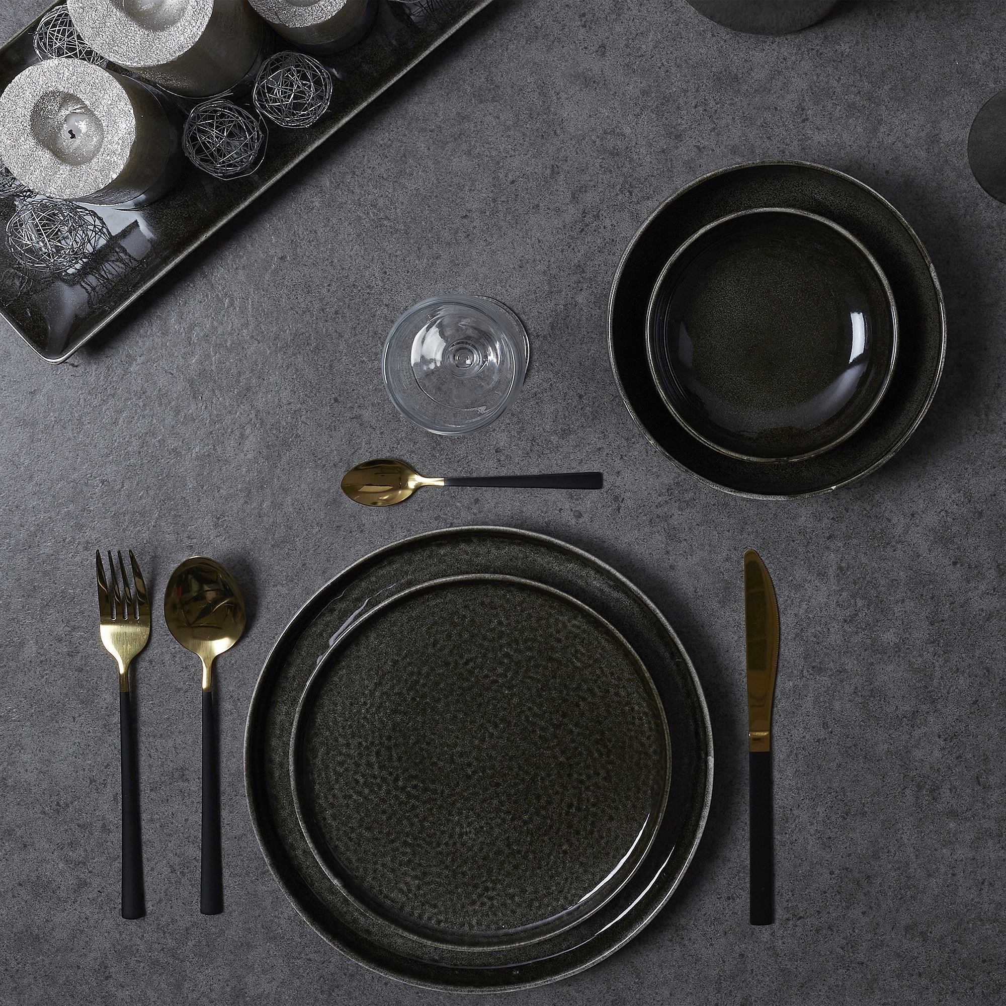 Set di 16 posate in acciaio inox con manico nero Table chic