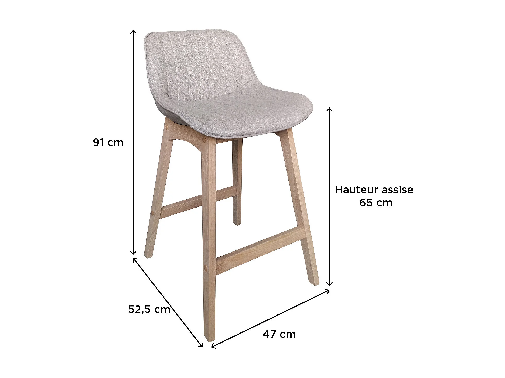 Set di sedie da bar e da isola in rovere con seduta in tessuto MELLOW da 65 cm