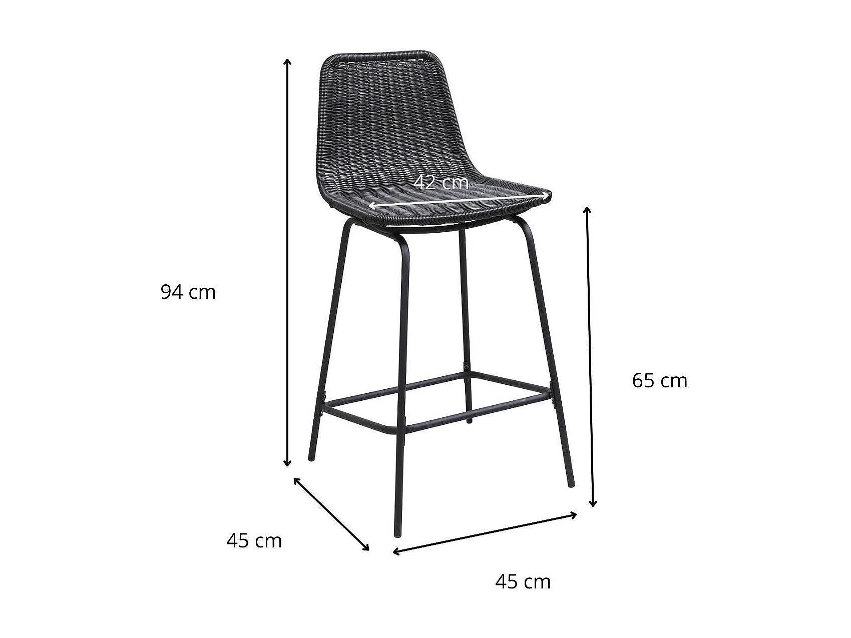 Set di sgabelli da bar e isola in metallo con seduta in rattan 65 cm BALI