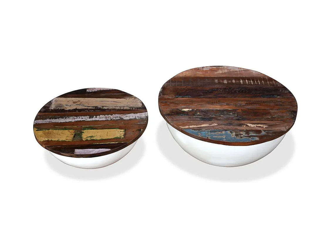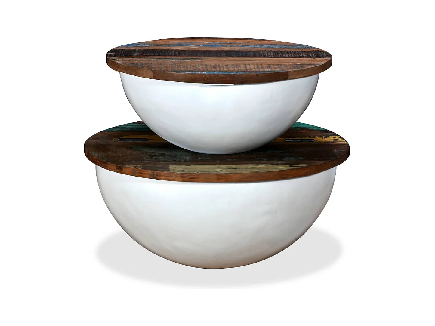 Set di tavolini da caffè da 2 pezzi, in legno massello di recupero, a forma di ciotola