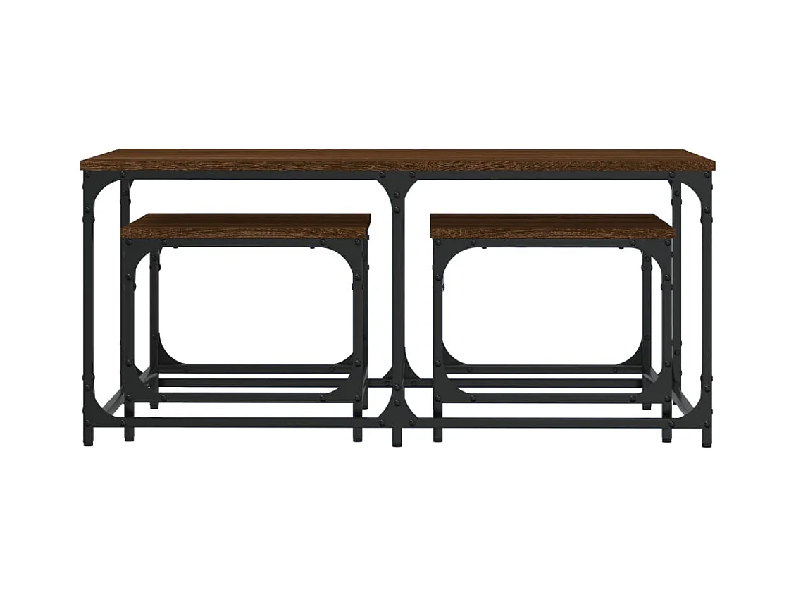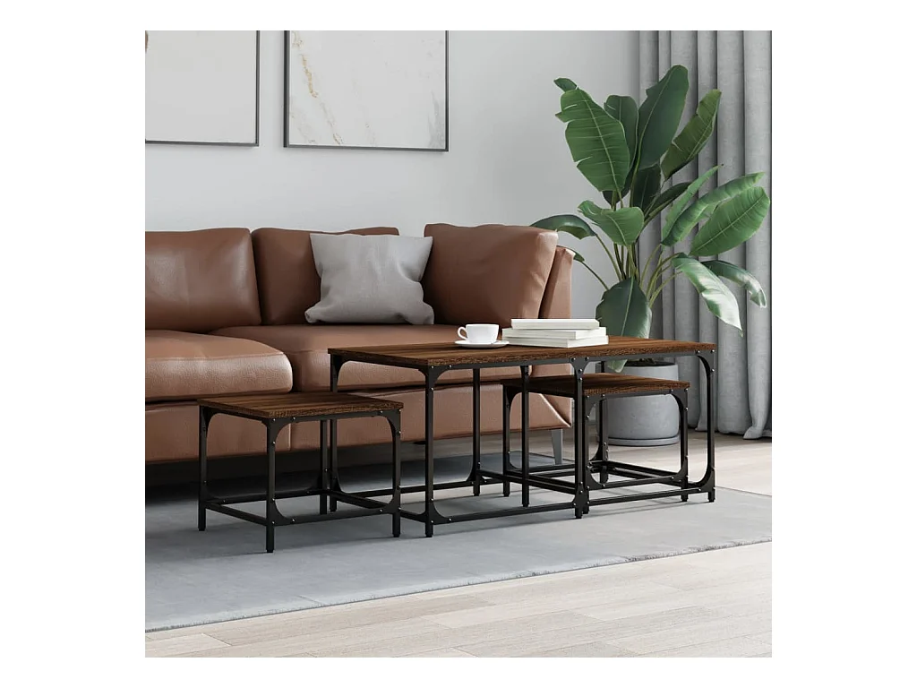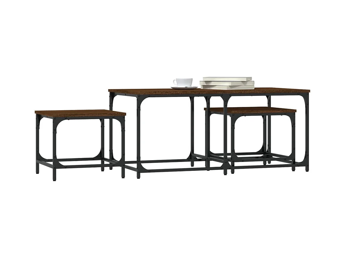 Set di tavolini da caffè impilabili da 3 pezzi, rovere marrone, legno ingegnerizzato
