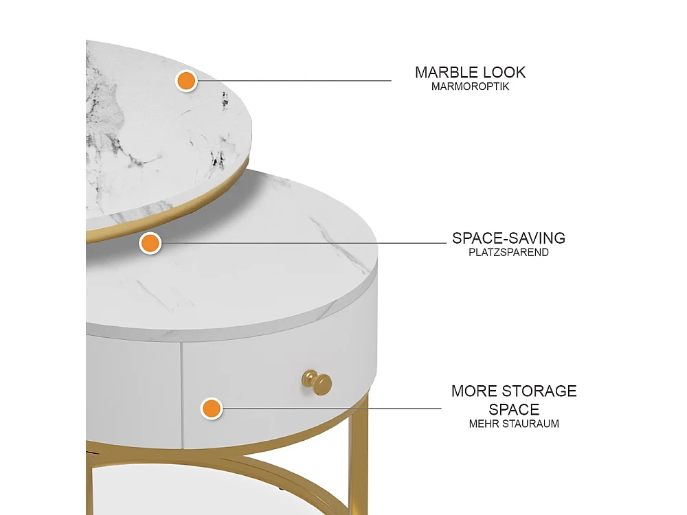 Tavolino da caffè impilabile in 2 pezzi, design moderno, MDF, bianco e oro, con cassetti portaoggetti (70x70x45 + 50x50x40 cm)