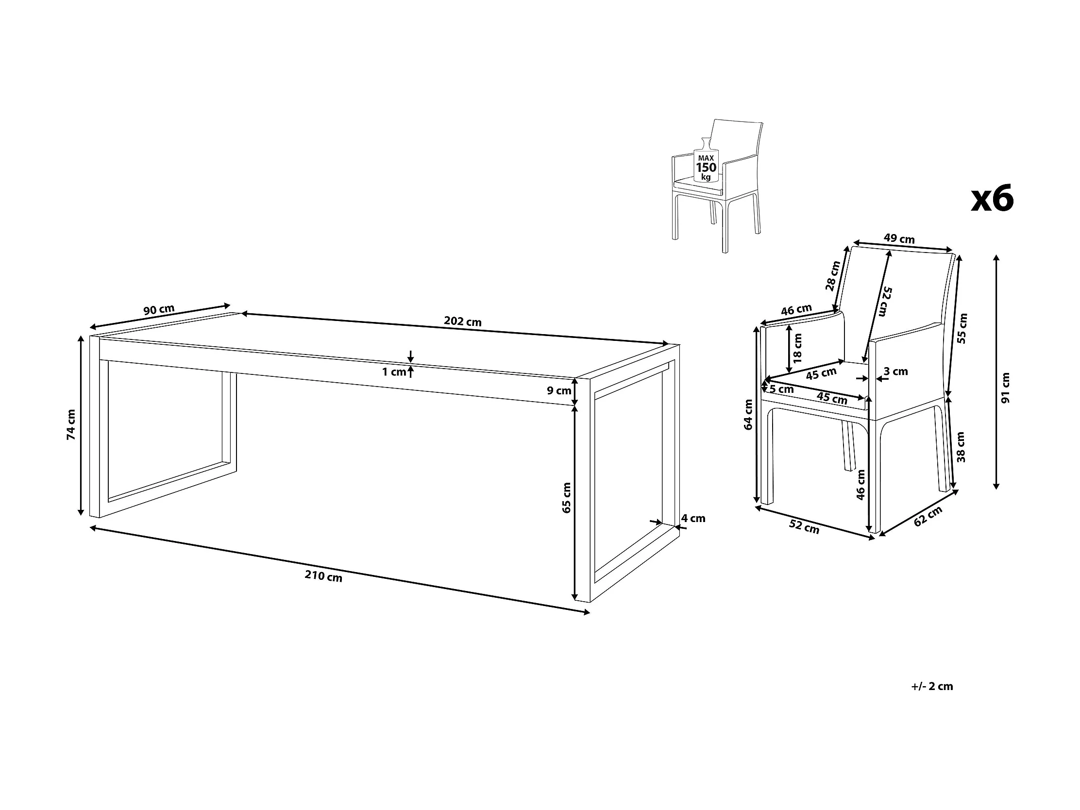 Set da pranzo da giardino 6 posti BACOLI con cuscini Metallo Grigio