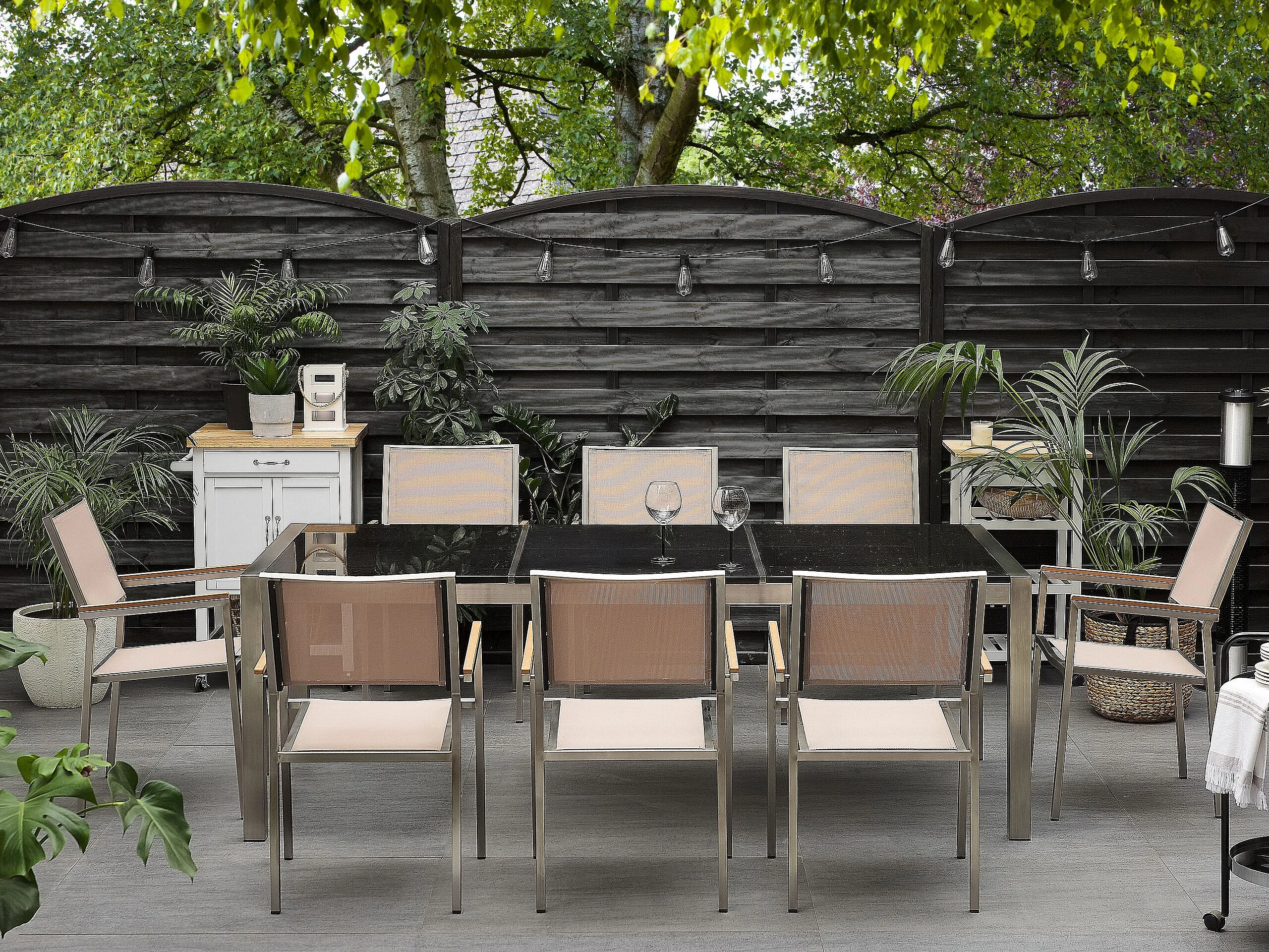Set da pranzo da giardino 8 posti GROSSETO Piastra tripla Granito Lucido Nero/ Beige