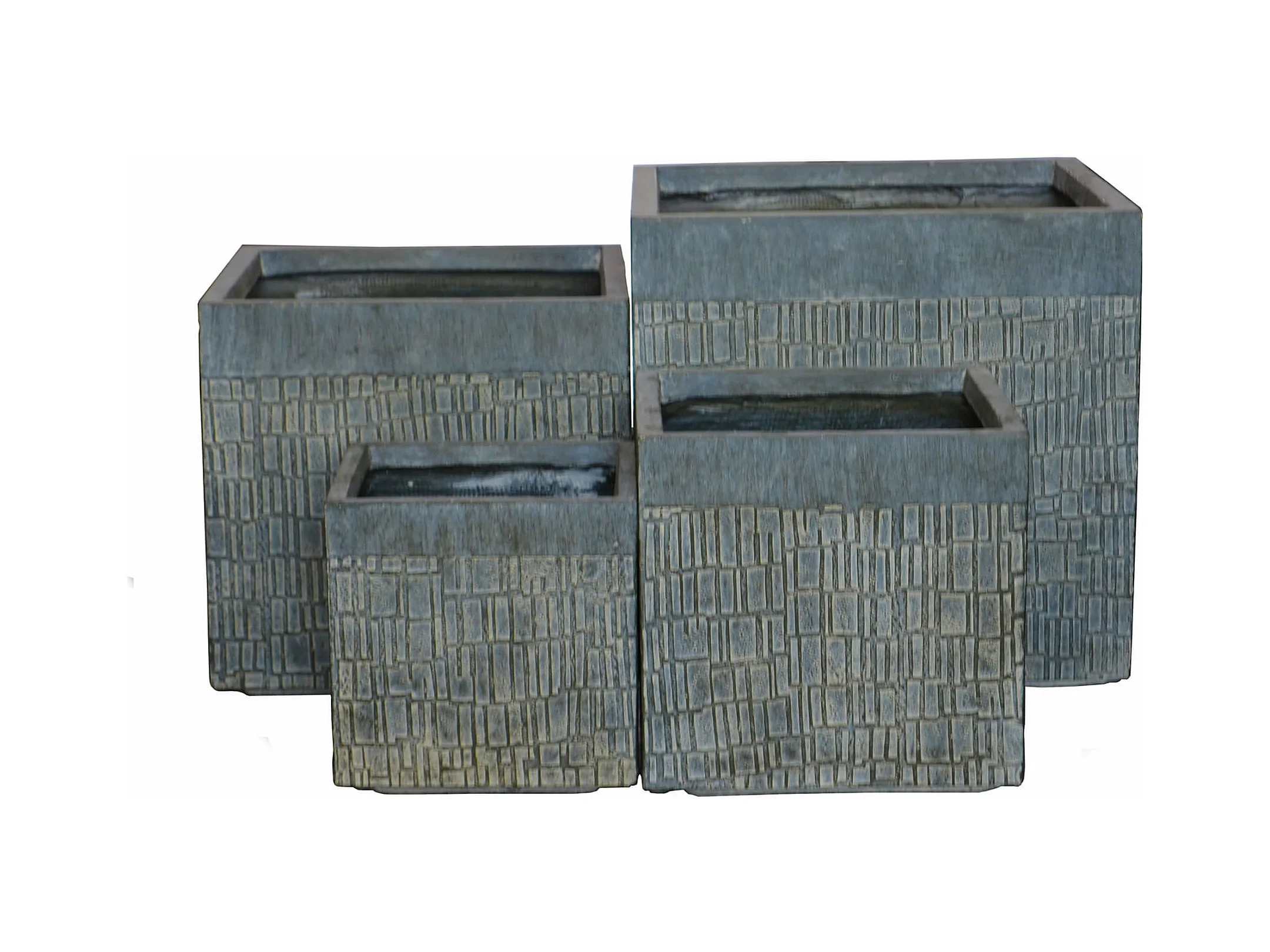 MilaniHome.it - set di vasi in fibra sintetica di design moderno industrial G.44,5x44,5x43,5/M.37,5x37,5x35,5/P.31x31x31/XS.25,5x25,5x25,5di coloreGrigio
