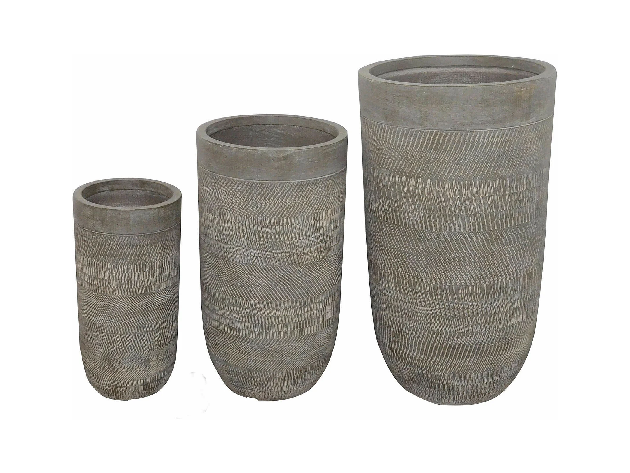 MilaniHome.it - set di vasi in fibra sintetica di design moderno industrial G.43,5x43,5x78,5/M.34x34x63,5/P.24x24x49di coloreMarrone