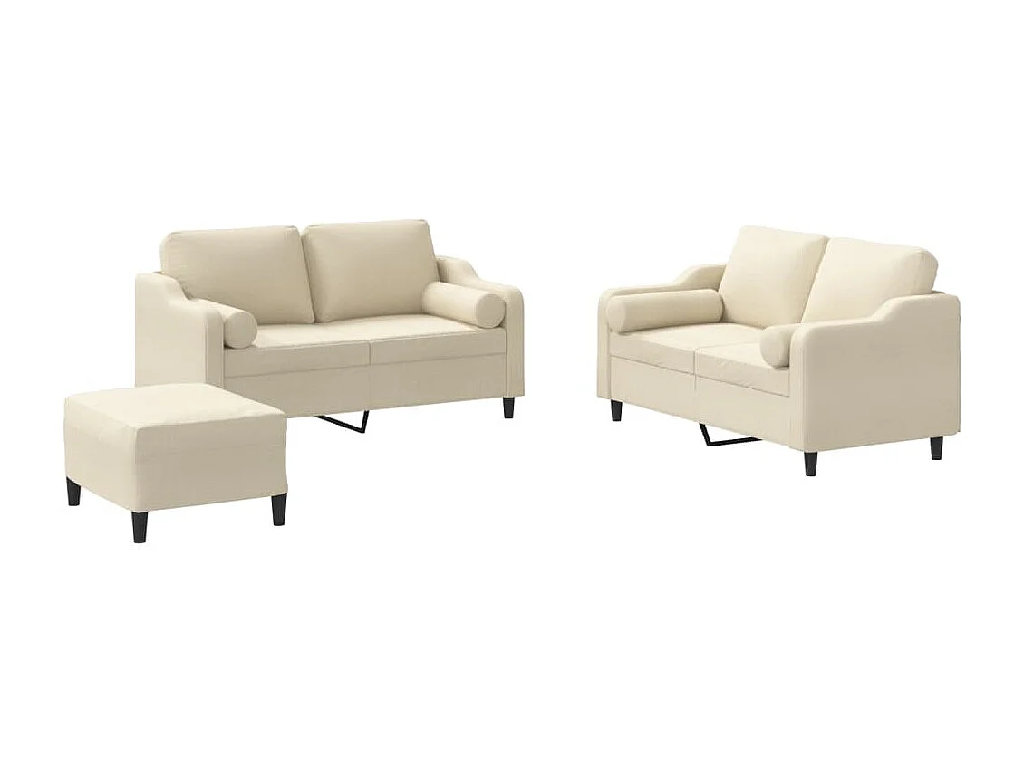 Set Divani 3 pz con Cuscini Crema in Tessuto