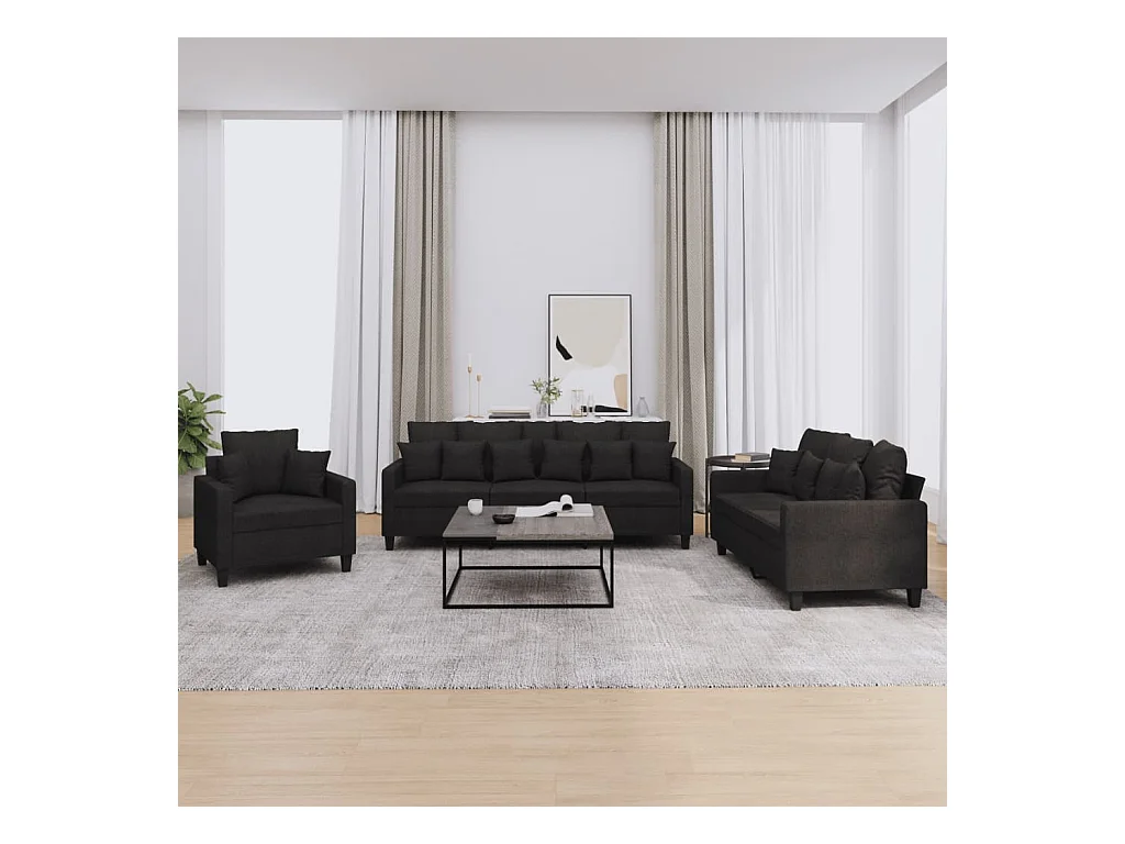 Set Divani 3 pz con Cuscini Nero in Tessuto