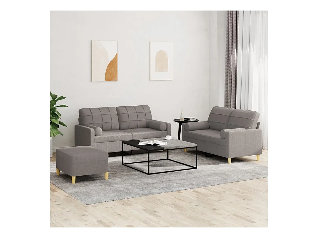 Set di Divani 3 pz con Cuscini Tortora in Tessuto