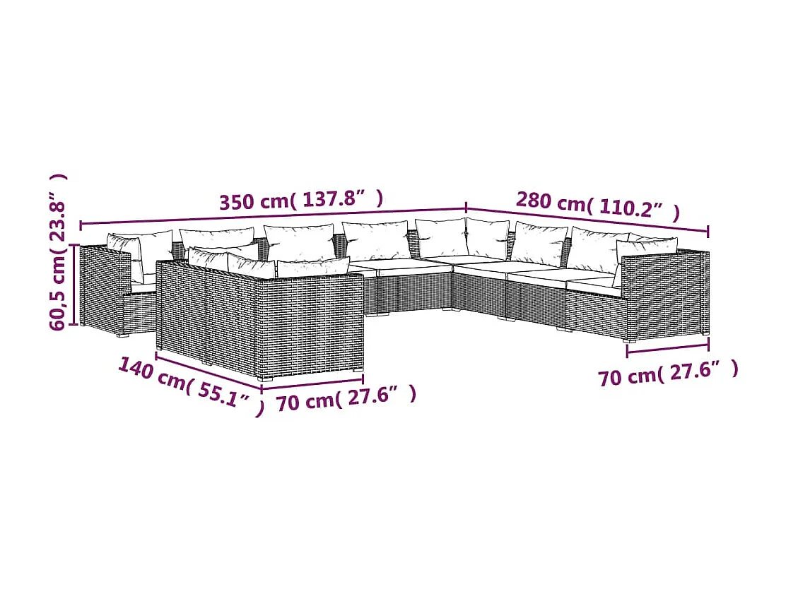 Set Divani da Giardino 10 pz con Cuscini in Polyrattan Marrone