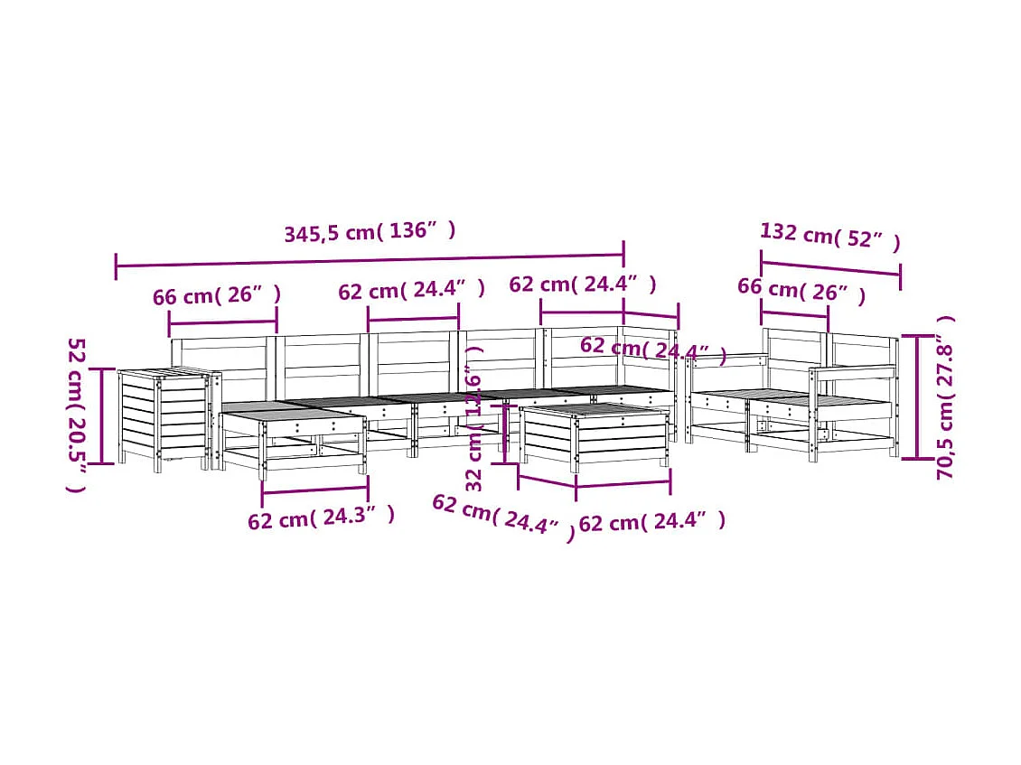Set Divani da Giardino 10 pz in Legno Massello Abete Douglas