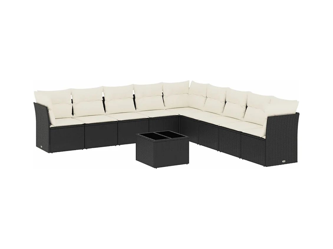 Set Divani da Giardino 10pz con Cuscini in Polyrattan Nero