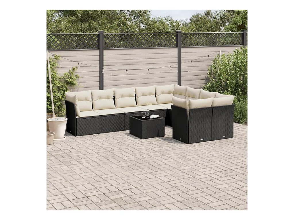 Set Divani da Giardino 10pz con Cuscini in Polyrattan Nero