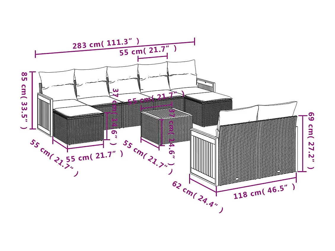 Set Divani da Giardino 9 pz con Cuscini Nero in Polyrattan