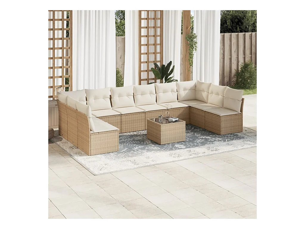 Set Divani da Giardino 11 pz con Cuscini Beige in Polyrattan