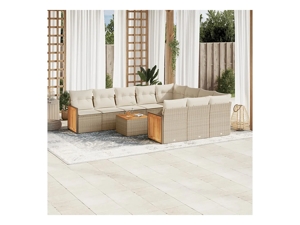 Set Divani da Giardino 11 pz con Cuscini Beige in Polyrattan
