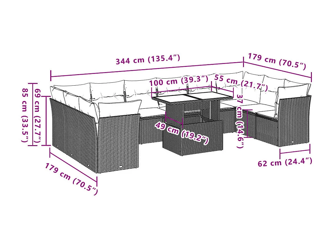 Set Divani da Giardino 11 pz con Cuscini Beige in Polyrattan