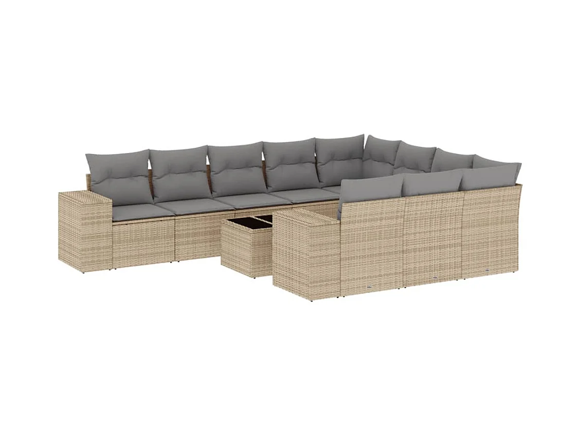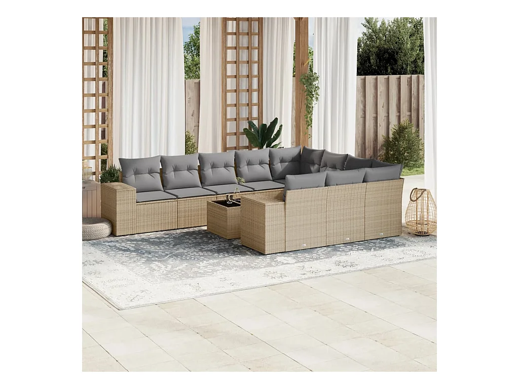 Set Divani da Giardino 11 pz con Cuscini Beige in Polyrattan